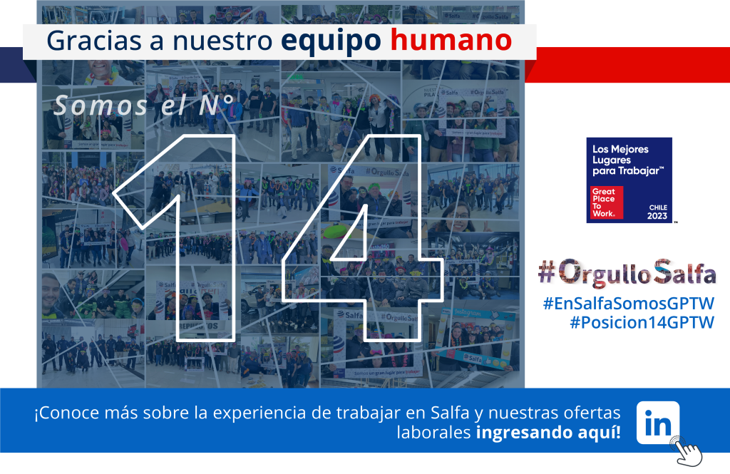 “Nuestros inicios partieron con Salfa, hace más de 30 años (…) Desde ahí nació nuestro gran aprecio, confianza y seguridad hacia sus equipos y maquinarias. Por eso nosotros recomendamos 100% Salfa.”